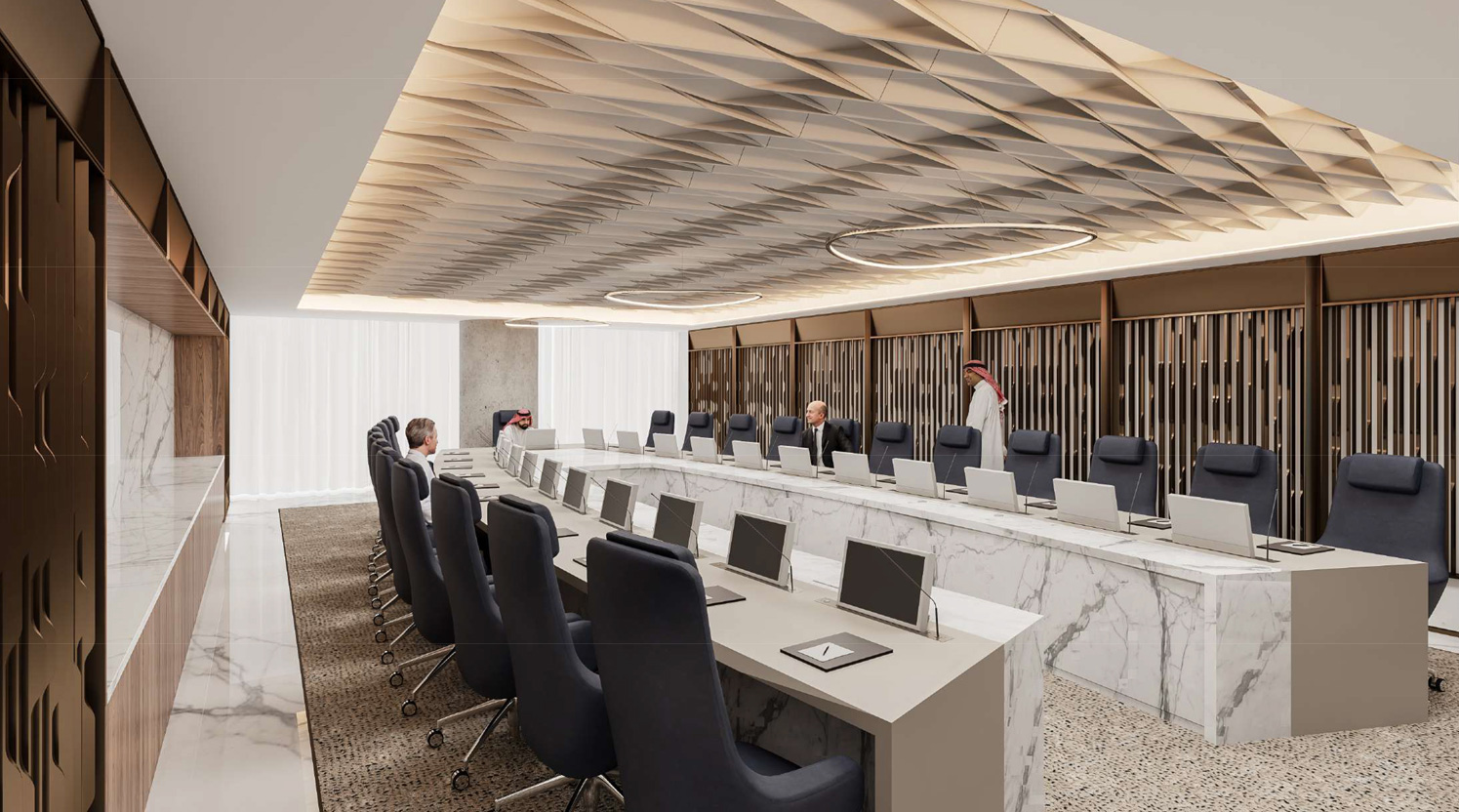 The fit-out of the Tadawul headquarters at KAFD reflects the significance and professionalism associated with financial institutions. While specific details vary, the overall design incorporates elements that convey reliability, sophistication, and technological advancement.