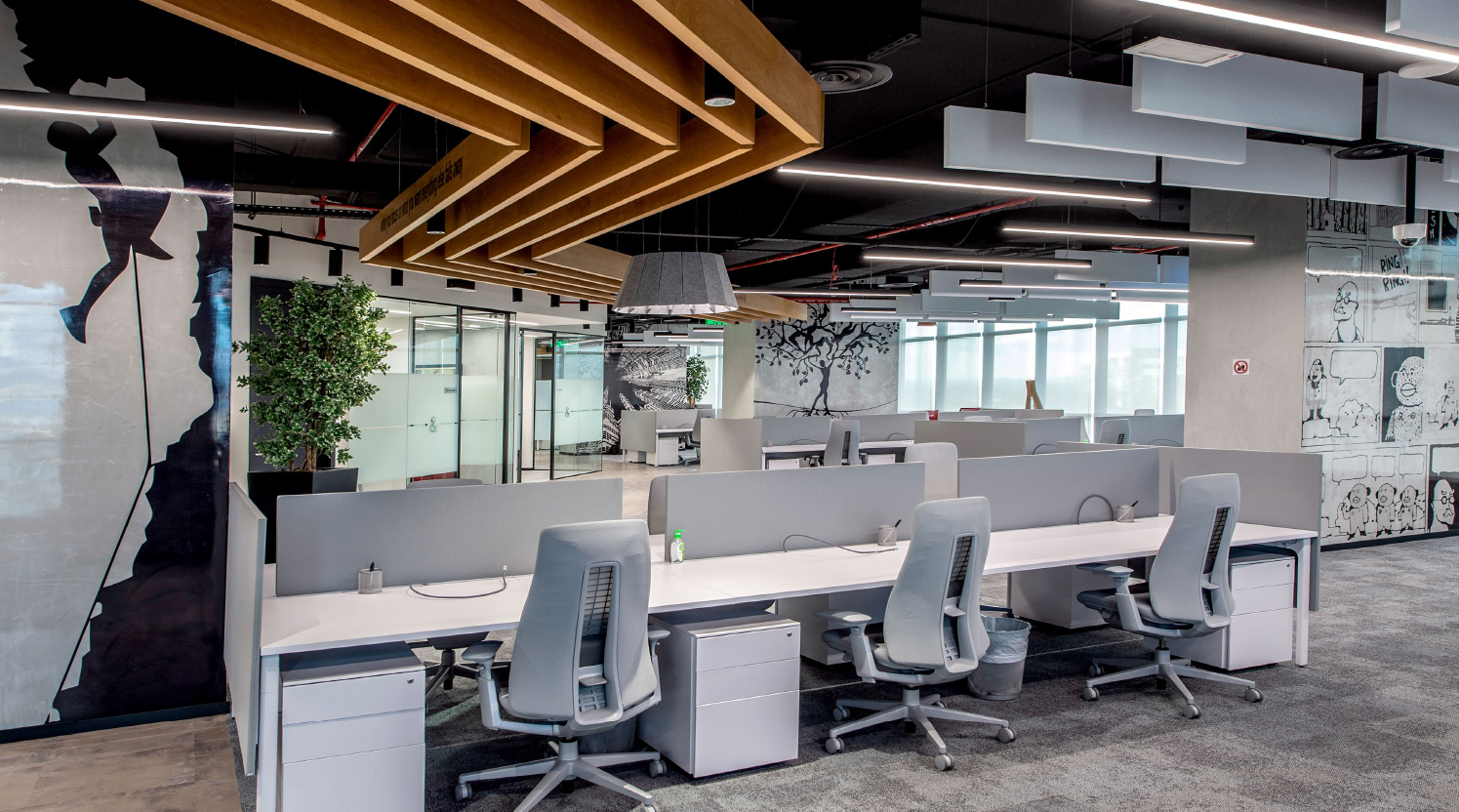 Strategy& offices were implemented to reflect a sense of formality with a hint of playfulness within the complete headquarter space. The use of irregular lines and configurations combined with grayscale tones reflect this essence, giving the space a light, yet efficient feel.